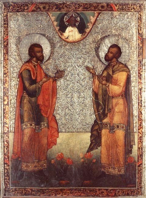 Οι Άγιοι Κοσμάς και Δαμιανός έζησαν και έδρασαν κατά τον 3ο αιώνα. Γεννήθηκαν στη Ρώμη και ήταν αδέλφια. Έχοντας τις ίδιες κλίσεις και ικανότητες, σπούδασαν την ιατρική επιστήμη. Τους συνέδεε πολύ όχι μόνο το ότι ήταν αδέλφια και ιατροί, αλλά και το ότι είχαν γαλουχηθεί με τα νάματα της χριστιανικής πίστεως.