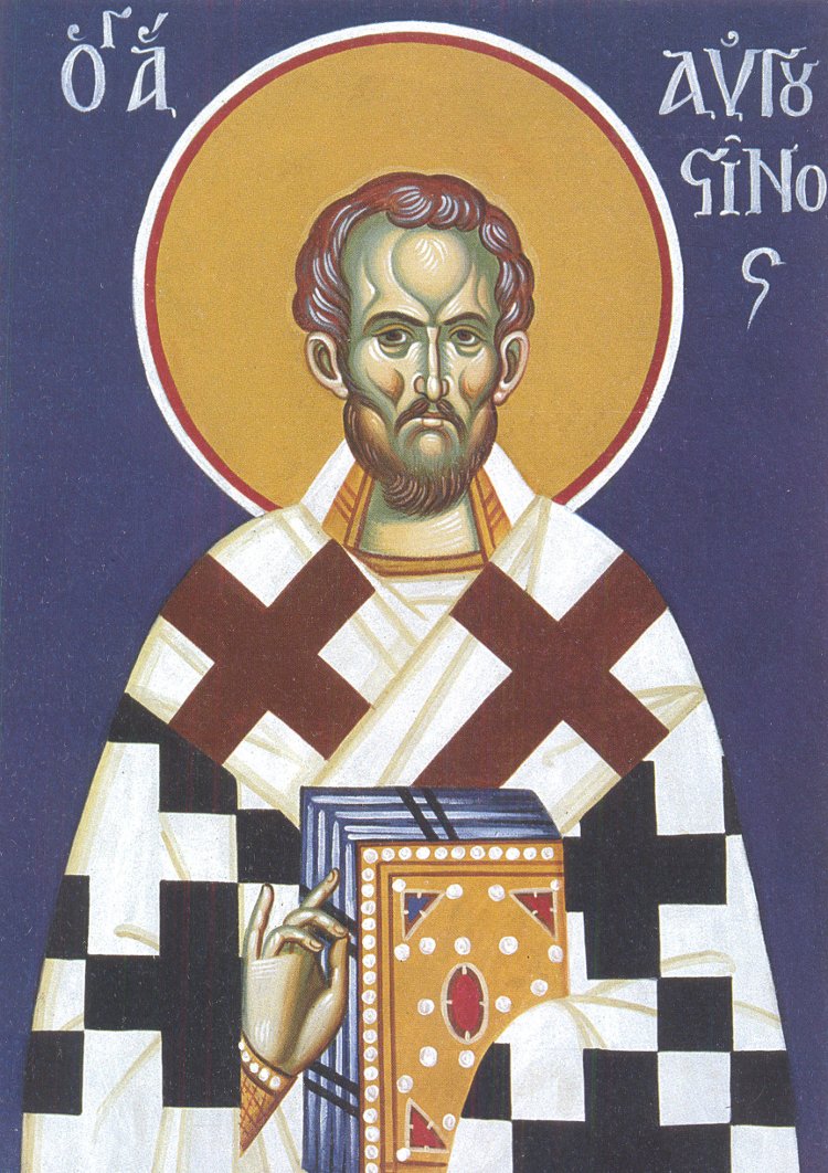 Ἔρωτι φλεχθεὶς τοῦ Θεοῦ Αὐγουστῖνε. Φωστὴρ ἐδείχθης παμφαέστατος, μάκαρ. Ἀμφὶ πέμπτῃ δέκατῃ θαν’ Αὐγουστῖνος ὁ περίπτυστος.