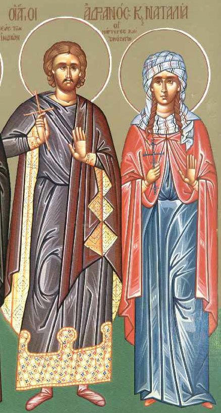 Πρόκειται για τους Αγίους Μάρτυρες Αδριανό και Ναταλία, το παράδειγμα των οποίων συνιστά την πεμπτουσία της κατά Χριστόν συζυγίας.