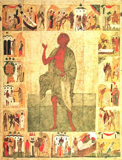 Ο άγιος Ανδρέας ο διά Χριστόν σαλός με σκηνές από τον βίο του. Ρωσική εικόνα του 16ου αιώνα. Αγία Πετρούπολη, Ρωσικό Μουσείο.
