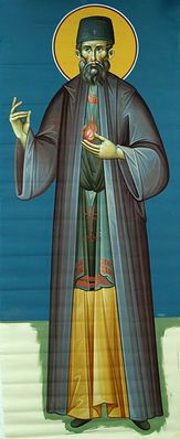 Ήταν φανερό ότι πρόκειτο για κληρικό γιατί το ράσο του είχε παραμείνει άθικτο. Το βράδυ, διαβάζοντας τον εσπερινό η Ηγουμένη άκουσε βήματα.. ο ήχος ερχόταν απο τον τάφο.. μετά απο τον περίβολο και έφτασε ως την πόρτα της εκκλησίας. Εκεί πρωτοαντίκρυσε τον Άγιο, ψηλός με μάτια μικρά στρογγυλά, με μακριά μαύρα γένια που έφταναν στον λαιμό, ντυμένος με την μοναχική αμφίεση. Στο ένα χέρι είχε μία φλόγα και με το άλλο ευλογούσε. Ο Άγιος ζήτησε να τον βγάλουν απο αυτή την θυρίδα που το είχαν. Την επόμενη κι όλας μέρα η Ηγουμένη καθάρισε τα οστά και τα τοποθέτησε σε μια θυρίδα στο Ιερό του Ναού. Το ίδιο βράδυ φανερώθηκε στον ύπνο της ο Άγιος και την ευχαρίστησε και της φανέρωσε και το όνομα