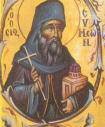 Ταῖς τῶν δακρύων σου ροαῖς, τῆς ἐρήμου τό ἄγονον ἐγεώργησας καί τοῖς ἐκ βάθους στεναγμοῖς, εἰς ἐκατόν τούς πόνους ἐκαρποφόρησας καί γέγονας φωστήρ, τῆ οἰκουμένη λάμπων τοῖς θαύμασι, Συμεών Πατήρ ἡμῶν Ὅσιε, πρεύσβευε Χριστῶ τῶ Θεῶ, σωθῆναι τᾶς ψυχᾶς ἡμῶν.