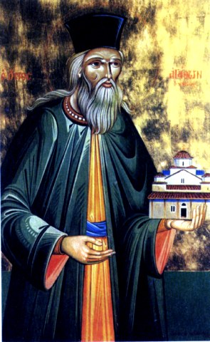 Μετά την καθίζηση πλησιόχωρης μονής και την ανεύρεση της εικόνας της Θεοτόκου υπό του οσίου, κτίσθηκε από τον ίδιο η νέα σημερινή μονή, η οποία έλαβε από τους μαθητές του οσίου το όνομα του κτίτορος και πρώτου ηγουμένου της.
