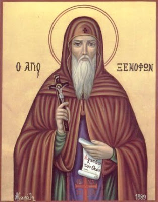 Ὡς γενεὰ εὐλογητὴ τῷ Κυρίῳ, τῆς οὐρανίου ἠξιώθησαν δόξης, ἀσκητικῶς δοξάσαντες Χριστὸν ἐπὶ τῆς γῆς, Ξενοφῶν ὁ Ὅσιος, καὶ ἡ τούτου συμβία, σὺν τοῖς ἀριστεύσασιν, ἱεροῖς αὐτῶν τέκνοις· οὓς εὐφημοῦντες εἴπωμεν φαιδρῶς· χαίροις Ὁσίων, χορεία τετράριθμε.