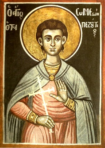 Ο Άγιος Συμεών καταγόταν από την Τραπεζούντα, αλλά ζούσε και έκανε το επάγγελμα του χρυσοχόου στην Κωνσταντινούπολη. Κάποτε λοιπόν βρέθηκε σε μια συμπλοκή, μεταξύ χριστιανών και τουρκοεβραίων, και συκοφαντήθηκε ότι δήθεν μαχαίρωσε ένα τουρκοεβραίο.