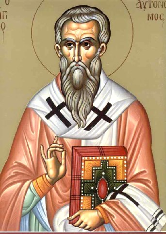 Ἐκ Δυσμῶν ἀνατείλας ὡς ἀστὴρ οὐρανόφωτος, καὶ πρὸς τὴν Ἐώαν ἐκλάμψας, ταὶς ἀκτίσι τῶν τρόπων σου, τὸν Ἥλιον τῆς δόξης Ἰησοῦν, ἐδόξασας ἀθλήσει σου στερρῆ· διὰ τοῦτο ἐδοξάσθης θεουργικῶς, Αὐτόνομε Πατὴρ ἠμῶν. Δόξα τῷ δεδωκότι σοὶ ἰσχύν, δόξα τῷ σὲ στεφανώσαντι, δόξα τῷ ἐνεργούντι διὰ σου, πάσιν Ἰάματα.