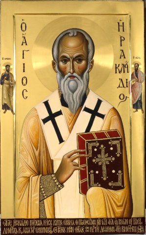 Τὴν ποίμνην ἐποίμανας, τὴν τοῦ Σωτῆρος Χριστοῦ, καὶ θείων, μακάριε, ναμάτων πάντων ψυχᾶς πλουσίως κατήρδευσος, ὅθεν τῶν Σὲ τιμώντων ὁ χορὸς ἀναμέλπει, ὕμνους Σοὶ καὶ γεραίρει, τὴν ἁγίαν Σου μνήμην ἱκέτευε οὒν ἀεὶ ὑπὲρ ἠμῶν, ἱεράρχα Ἠρακλείδιε.