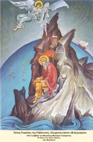 Αργότερα με την ευλογία του Ιλαρίωνος αποσύρθηκε σε τέλεια μόνωση, για να εντρυφά απερίσπαστος στις θείες θεωρίες. Αφού έζησε πολλά χρόνια κατ’ αυτόν τον τρόπο, εκάρη μεγαλόσχημος με το όνομα Ρωμύλος.