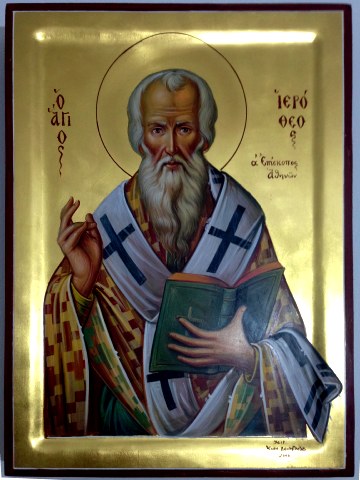 Ο Άγιος Ιερόθεος ήταν πλατωνικός φιλόσοφος και ένας από τα εννέα μέλη του Συμβουλίου της Γερουσίας του Αρείου Πάγου. Αφού δέχθηκε και διδάχθηκε την πίστη του Χριστού από τον Απόστολο Παύλο, χειροτονήθηκε πρώτος επίσκοπος Αθηνών.
