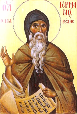 Ο άγιος Σάββας ο Βατοπαιδινός (βλέπε 15 Ιουνίου), συνδεόμενος με τον όσιο Γερμανό, έλεγε στον μετέπειτα βιογράφο του άγιο Φιλόθεο τον Κόκκινο, τα εξής χαρακτηριστικά εγκωμιαστικά λόγια, όπως μας τα καταγράφει: «Βούλομαι ακριβώς ειδέναι σε φίλος, ως ο κοινός ημών πατήρ και πάλαι μεν της κάτω και ημετέρας πατρίδος, νυν δε της μεγίστης Λαύρας, μάλλον δε των ουρανών ήδη και των απογεγραμμένων εκεί μέγας πολίτης, Γερμανός ο θείος, Αντώνιος εστίν νυν εν ημίν άλλος ο μέγας· ου την πολιτείαν φημί και την της αρετής άσκησιν μόνον, αλλα δή και την καθαρότητα της καρδίας και την ενοικούσαν αυτή του Πνεύματος χάριν τε και σοφίαν».