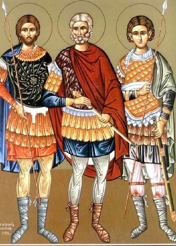 Τῶν Ἁγίωv Μαρτύρωv τὰ κατορθώματα, οὐρανῶν αἱ Δυνάμεις ὑπερεθαύμασαν· ὅτι ἐν σώματι θνητῷ, τὸν ἀσώματον ἐχθρόν, τῇ δυνάμει τοῦ Σταυροῦ, ἀγωνισάμενοι καλῶς, ἐνίκησαν ἀοράτως, καὶ πρεσβεύουσι τῷ Κυρίῳ, ἐλεηθῆναι τὰς ψυχὰς ἡμῶν.