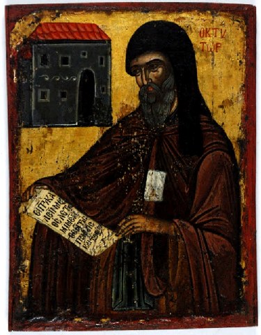 Η πρώτη εικόνα που σας παρουσιάζουμε, αποτελεί την παλαιότερη εικόνα του Αγίου Ιγνατίου. Φιλοτεχνήθηκε πιθανόν κατά τη διάρκεια της ζωής του, όπως φαίνεται από το ότι δεν καταγράφεται το όνομα του αγίου, αλλά μόνο η επιγραφή «ο κτύτωρ».