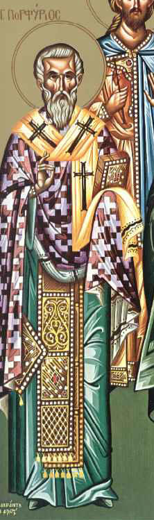 Ο Όσιος Πορφύριος γεννήθηκε στη Θεσσαλονίκη από πλούσιους και ευσεβείς γονείς. Αφού εγκατέλειψε και γονείς και πλούτη, στα χρόνια της βασιλείας του Αρκαδίου και Ονωρίου, αναχώρησε για την Αίγυπτο που ήταν τότε μεγάλο μοναστικό κέντρο και έγινε μοναχός σε σκήτη.