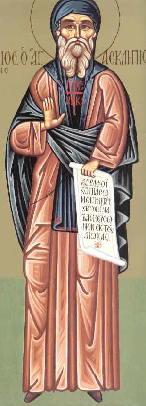 Ο Όσιος Ασκληπιός ήταν μαθητής του Αγίου Πολυχρονίου (τιμάται 23 Φεβρουαρίου), που διακόνησε τον Όσιο Ζεβινά και μιμήθηκε κατά πάντα τον Γέροντα αυτού στην άσκηση.
