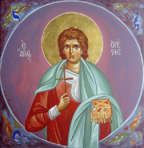 Χριστὸν ὁμολογήσας ἐπὶ τῶν ἀσεβούντων, εἰδωλομανίας τὸ θράσος καθεῖλες Ἀθλοφόρε, καὶ δόξης ἐγένου κοινωνός, ἀγῶνας πολυτρόπους ἐνεγκῶν διὰ τοῦτο σὲ Ὀρέστα ὡς νικητήν, τιμῶντες σοὶ ἐκβοῶμεν δόξα τῷ παρασχόντι σοι ἰσχύν, δόξα τῷ σὲ στεφανώσαντι, δόξα τῷ ἐνεργούντι διὰ σοῦ, πάσιν ἰάματα.