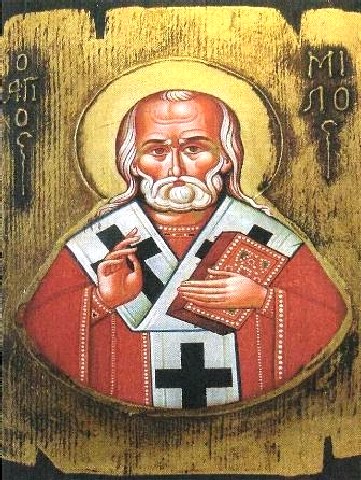 Kαι έτζι βιαίως απορρίψαντες τας ψυχάς των, εθανατώθησαν και οι δύω. Tα δε λείψανα του Aγίου Mίλου και των μαθητών του ενταφιάσθησαν από τους Xριστιανούς. Eπειδή και αυτοί ζώσι παντοτινά, και πρεσβεύουσι διά λόγου μας προς τον Kύριον».