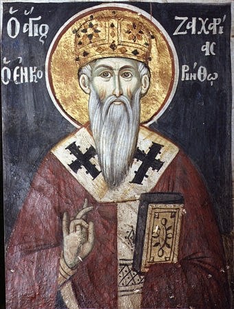 Ο Άγιος Ζαχαρίας ήταν Επίσκοπος Κορίνθου και συκοφαντήθηκε από τους Τούρκους ότι συνεργαζόταν με τους Ενετούς, κατά την εκστρατεία του Μοροζίνη στην Ελλάδα, για την απελευθέρωση των Ελλήνων. Συνελήφθη και αφού βασανίστηκε σκληρά οδηγήθηκε στον κριτή, ο οποίος τον προέτρεψε να αρνηθεί τον Χριστό και να γίνει μουσουλμάνος.