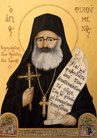 Διαβάζοντας ο Άγιος του Θεού Φιλούμενος, τον βίο του Αγίου Ιωάννου του Καυσοκαλυβίτου, ως άλλος μιμητής εκείνου, έκαυσε τις επιθυμίες του κόσμου τούτου.