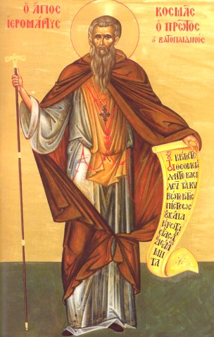 Εδέχθη τον μαρτυρικό θάνατο ο μακάριος από αγάπη προς τον Χριστό. Το μαρτύριο είναι ό,τι υψηλότερο έχει να προσφέρει ο άνθρωπος προς τον Θεό. Μακάριε και Σεπτέ Πρώτε του Αγίου Όρους, Ιερομάρτυς του Χριστού Κοσμά, πρώτος στο ιερό διακόνημα του Πρώτου της Ιεράς Κοινότητος, πρώτος και στο μαρτύριο και την ομολογία του Χριστού.