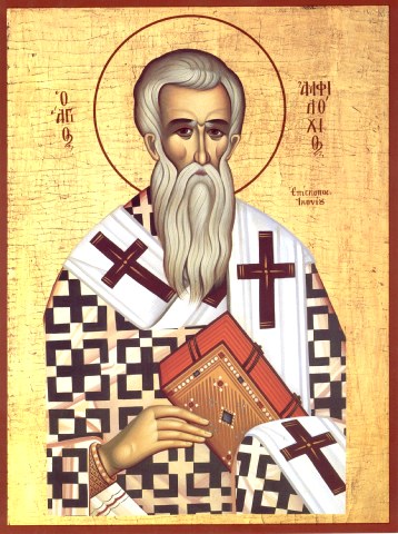 Ἡ θεία βροντή, ἡ σάλπιγξ ἡ τοῦ Πνεύματος, πιστῶν φυτουργέ, καὶ πέλεκυς τῶν αἱρέσεων, Ἱεράρχα, Ἀμφιλόχιε, τῆς Τριάδος θεράπον μέγιστε, σὺν Ἀγγέλοις πέλων ἀεί, πρεσβεύων μὴ παύσῃ ὑπὲρ πάντων ἡμῶν.