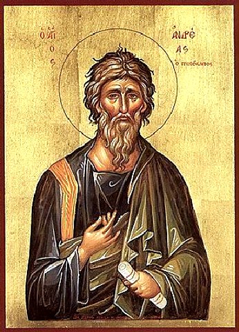 Πρώτος προσπελάσας τω Ιησού, Πρωτόκλητος ώφθης, και ακρότης των Μαθητών, Ανδρέα θεόπτα, εντεύθεν διανύεις, παθών τας αναβάσεις της αναστάσεως.