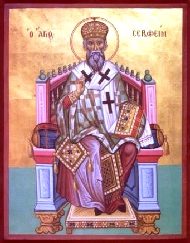 Τοῦ Ἀρχιποίμενος λαμπρὸν ἀπαύγασμα καί τοῦ ποιμνίου σου στῦλος καὶ καύχημα, θύτης καὶ θῦμα τοῦ Χριστοῦ ἐξέλαμψας ἐν τῷ κόσμῳ. ᾿Εν τοῖς μαρτυρίοις σου ᾿Εκκλησίαν ἐκόσμησας, Γένος χειμαζόμενον δαψιλῶς εὐηργέτησας· ὅθεν, Σεραφεὶμ ἱερώτατε, ἱκέτευε σωθῆναι τὰς ψυχὰς ἡμῶν.
