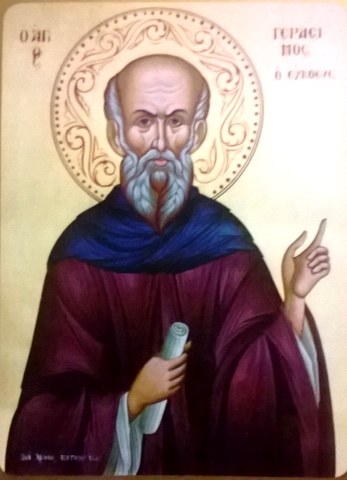 Ο Όσιος Γεράσιμος ήταν Ιεραπόστολος της Ελλάδας κατά τους χρόνους της φραγκοκρατίας (περί το 1320 μ.Χ.). Γεννήθηκε στη νήσο Εύριπο (Εύβοια) από πλούσιους και ευγενείς γονείς. Οι γονείς του Γερασίμου κατάγονταν από τη δυτική φραγκική οικογένεια του Ρήγα Φάτζου.