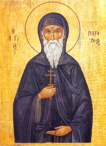 Ἔν σοι Πάτερ ἀκριβῶς, διεσώθη τὸ κατ᾽ εἰκόνα· λαβὼν γὰρ τὸν σταυρόν, ἠκολούθησας τῷ Χριστῷ, καὶ πράττων ἐδίδασκες, ὑπερορᾷν μὲν σαρκός, παρέρχεται γὰρ ἐπιμελεῖσθαι δὲ ψυχῆς, πράγματος ἀθανάτου· διὸ καὶ μετὰ Ἀγγέλων συναγάλλεται, Ὅσιε Πατάπιε τὸ πνεῦμά σου.