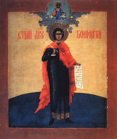 Τιμήσας τὸν Θεόν, παρ’ αὐτοῦ ἐτιμήθης, Μαρτύρων καλλονή, Βονιφάτιε μάκαρ· διὸ καὶ στεφάνῳ σε, θείας δόξης ἐκόσμησεν· ὅθεν σήμερον, τὴν παναγίαν σου μνήμην, ἑορτάζοντες, ὑπὲρ ἡμῶν σὲ αἰτοῦμεν, πρεσβεύειν πρὸς Κύριον.