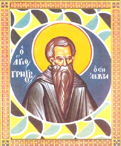 Βίου λαμπρότητι καλλωπιζόμενος, σκεύος πολύτιμον της θείας Χάριτος και καί αρετών υπογραμμός εδείχθης δι’ εγκρατείας, Όσιε Γρηγόριε, Κρήτης άγιον βλάστημα, της Ακρίτα Μάνδρας δε ιερόν εγκαλώπισμα. Και νυν μη διαλίπης πρεσβεύων, Πάτερ, υπέρ των σε τιμώντων