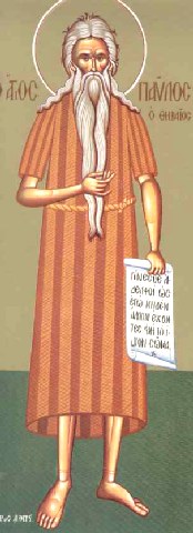 Θείου Πνεύματος, τὴ ἐπινεύσει, πρῶτος ὤκησας, ἐν τὴ ἐρήμω, Ἥλιου τὸν ζηλωτὴν μιμησάμενος καὶ δι’ ὀρνέου τραφεῖς ὡς ἰσάγγελος, ὑπ’ Ἀντωνίου τῷ κόσμῳ ἐγνώρισαι. Παῦλε ὅσιε, Χριστὸν τὸν Θεὸν ἱκέτευε, δωρήσασθαι ἠμὶν τὸ μέγα ἔλεος.
