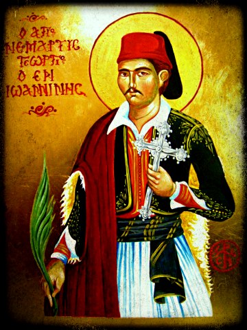 Τὸν πανεύφημον Μάρτυν Χριστοῦ Γεώργιον, Ἰωαννίνων τὸ κλέος καὶ πολιοῦχον λαμπρόν, ἐν ᾠδαῖς πνευματικαῖς ἀνευφημήσωμεν· ὅτι ἐνήθλησε στερρῶς, καὶ κατήνεγκεν ἐχθρόν, τοῦ Πνεύματος τῇ δυνάμει· καὶ νῦν ἀπαύστως πρεσβεύει, ἐλεηθῆναι τὰς ψυχὰς ἡμῶν.