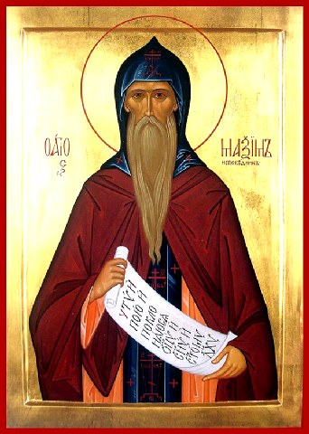 Ὀρθοδοξίας ὁδηγέ, εὐσεβείας Διδάσκαλε καί σεμνότητος, τῆς Οἰκουμένης ὁ φωστήρ, τῶν Μοναζόντων θεόπνευστον ἐγκαλλώπισμα, Μάξιμε σοφέ, ταῖς διδαχαῖς σου πάντας ἐφώτισας, λύρα τοῦ Πνεύματος. Πρέσβευε Χριστῷ τῷ Θεῷ, σωθῆναι τάς ψυχάς ἡμῶν.
