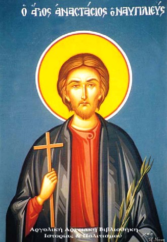 Ο Άγιος Αναστάσιος ήταν γέννημα θρέμμα του Ναυπλίου και ζωγράφος επιδέξιος ως προς το επάγγελμα. Αρραβωνιάστηκε εκεί την κόρη ενός χριστιανού και σε λίγες μέρες άκουσε κάποια σφάλματα για την αρραβωνιαστικιά του και την άφησε.