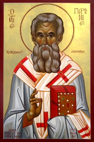 Tῷ μύρῳ τοῦ Πνεύματος, ποιμὴν Λαμψάκου ὀφθείς, τὴν θείαν ἐνέργειαν παρὰ Θεοῦ δαψιλῶς θαυμάτων ἐπλούτησας, δαίμονας ἀπελαύνειν, ἀσθενοῦντας ἰᾶσθαι, νόσους ἀποδιώκειν καὶ πληρῶν τὰς αἰτήσεις, Παρθένιε ἱεράρχα, τῶν προσιόντων σοι.