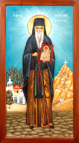Χαίροις τῶν Ὁσίων ὁ μιμητής, καὶ ζωῆς ἁγίας, ὁ θεόπνους ὑφηγητής· χαίροις Θεοτόκου, ὁ γνήσιος θεράπων, Μελέτιε θεόφρον, Ἀγγέλων σύσκηνε.