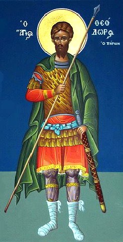 Μεγάλα τά τῆς πίστεως κατορθώματα! ἐν τῇ πηγῇ τῆς φλογός, ὡς ἐπί ὕδατος ἀναπαύσεως, ὁ ἅγιος Μάρτυς Θεόδωρος ἠγάλλετο· πυρί γάρ ὁλοκαυτωθείς, ὡς ἄρτος ἡδύς, τῇ Τριάδι προσήνεκται. Ταῖς αὐτοῦ ἱκεσίαις, Χριστέ ὁ Θεός, σῶσον τάς ψυχάς ἡμῶν.