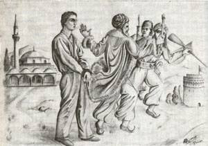 Εκεί είχε πάρα πολλές δυσκολίες και είχαν σκοπό να τον κακοποιήσουν και να τον σκοτώσουν. Διά θαύματος, τον γλύτωσε ο Μεγαλομάρτυς Δημήτριος παρουσιαζόμενος ως αξιωματικός στους Τούρκους.