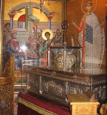 Από μία επιγραφή του 1284 μ.Χ. πάνω σε λευκόμάρμαρο, η oποία βρέθηκε στη Θεσσαλονίκη δίπλα στην πύλη του τζαμιού Εσκί Σεράι (ναός του Προφήτη Ηλία) που δημοσιεύθηκε από τους Ευθ. Τσιγαρίδα Κάτια Λοβέρδου-Τσιγαρίδα και σήμερα βρίσκεται στο Ναό του Αγίου Γεωργίου (Ροτόντα), πληροφορούμαστε ότι ο ανακαινιζόμενος ναός του τρισμάκαρος «έχει εντός τον μέγα μυροβλύτη».