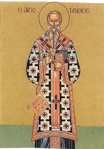 Κατὰ παθῶν βασιλεύσας τῶν τῆς σαρκός, Ἱεράρχης ἐχρίσθης θεοπρεπῶς, καὶ τὴν βασιλεύουσαν, ὀρθοδόξως ἐποίμανας, ἀπελάσας θῆρας, αἱρέσεων θεόπνευστε, τὴν τῶν σεπτῶν εἰκόνων, τρανώσας προσκύνησιν· ὅθεν μετὰ τέλος, ἀτελεύτητον χάριν, ἀξίως κεκλήρωσαι, Ἱεράρχα Ταράσιε. Διὰ τοῦτο βοῶμέν σοι. Πρέσβευε Χριστῷ τῷ Θεῷ, τῶν πταισμάτων ἄφεσιν δωρήσασθαι, τοῖς ἑορτάζουσι πόθῳ, τὴν ἁγίαν μνήμην σου.