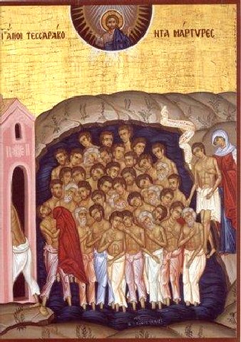 Τὴν θεοσύλλεκτον, τοῦ Λόγου φάλαγγα, τοὺς Τεσσαράκοντα καὶ δυὸ Μάρτυρας, τοὺς ἐν μίᾳ πάντας σπουδή, ἀθλήσαντας τιμήσωμεν οὗτοι γὰρ τῆς πίστεως, ἡνωμένοι τὴ χάριτι , δῆμον ἀκαθαίρετον, ἱερῶς συνεκρότησαν, καὶ ὤφθησαν Χριστοῦ κληρονόμοι, ξίφει τμηθέντες τοὺς αὐχένας.