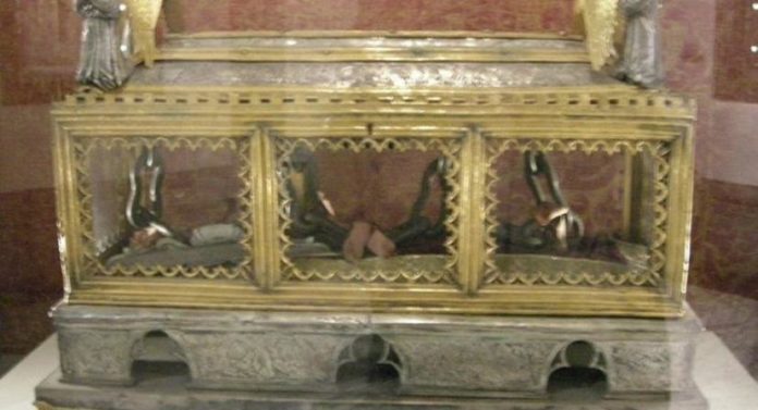 Αυτήν την αλυσίδα που λύθηκε από εμφάνιση Αγγέλου, κάποιοι από τους πιστούς την βρήκαν και την διαφύλαξαν κατά διαδοχή. Αυτή ύστερα μεταφέρθηκε από τους ευσεβείς στην Κωνσταντινούπολη και κατατέθηκε στον ναό του αγίου Πέτρου που βρίσκεται μέσα στη μεγάλη Εκκλησία, όπου τελείται και η σύναξή του».