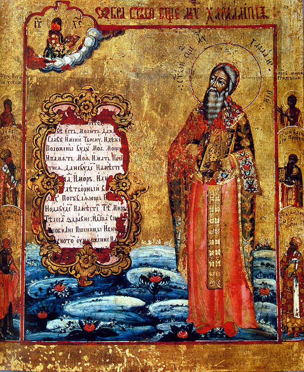 Ὡς φωστήρ ἀνέτειλας ἐκ τῆς ἑῴας, καί πιστούς ἐφώτισας, ταῖς τῶν θαυμάτων σου βολαῖς, Ἱερομάρτυς Χαράλαμπες· ὅθεν τιμῶμεν τὴν θείαν σου ἄθλησιν.