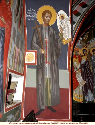 Πῦρ τὸ ζωηφόρον ἔνδον λαβών, ὅλως ἀνεφλέχθης, τῇ ἀγάπῃ τοῦ Ἰησοῦ· ὅθεν καὶ ἀθλήσας, αὐτοῦ βλέπεις τὸ κάλλος, ὡς πάλαι ἐπεθύμεις, ὦ Ἀγαθάγγελε.