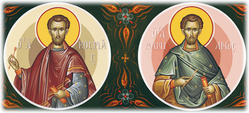 Οἱ Ἅγιοι Ἀνάργυροι Κοσμᾶς καὶ Δαμιανός, οἱ ὁποῖοι ἔζησαν τὴν ἐποχὴ ποὺ αὐτοκράτορας τῶν Ρωμαίων ἦταν ὁ Κάρυνος, ἦταν γιατροὶ στὸ ἐπάγγελμα καὶ παρεῖχαν ἰάσεις σὲ ὅλους ὅσους εἶχαν ἀνάγκη, καὶ γιὰ ἀντάλλαγμα δὲν ἔπαιρναν χρήματα, ἀλλὰ τὸ μόνο ποὺ ζητοῦσαν ἦταν νὰ πιστέψουν στὸν Χριστό.