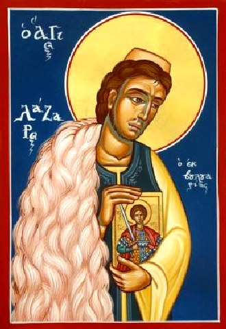 Ἐξ ἑώας ἔλαμψας, ὡς φαεινὸς ἑωσφόρος, τῶν λαμπρῶν ἀγώνων σου ταῖς νοηταῖς μαρμαρυγαῖς, καταφωτίζων τοῦς χαῖρέ σοι, ἀναβοῶντας, πολύαθλε Λάζαρε.