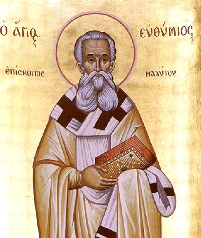Μαδύτου σὲ πρόεδρον, καὶ Ἱεράρχην κλεινόν, ἡ χάρις ἀνέδειξεν, ὡς τοῦ Χριστοῦ μιμητήν, Εὐθύμιε Ὅσιε, ὅθεν ἱερατεύσας, θεοφρόνως Κυρίω, ὤφθης τῆς εὐσεβείας, πρακτικὸς ὑποφήτης καὶ νῦν Πάτερ Ἱκέτευε, ὑπὲρ τῶν τιμώντων σε.
