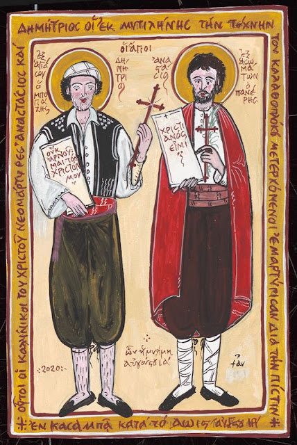 Ο άλλος Νεομάρτυς, Δημήτριος, από την Αγιάσο, Μπεγιάζης στο επώνυμο, που σημαίνει λευκός, έμεινε ορφανός σε μικρή ηλικία, μαζί με ένα άλλο αδελφό, από πατέρα. Η μητέρα τους ξαναπαντρεύτηκε, ο πατριός όμως δεν αγαπούσε τα προγόνια του, πολλές φορές τ’ άφηνε νηστικά, χωρίς ρούχα και τα έδερνε.