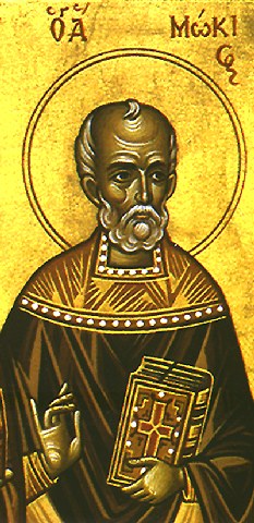 Χριστῷ ἱερουργῶν, ἱερεὺς ὢν τῆς δόξης, θυσίαν λογικήν, καὶ ὁλόκληρον θῦμα, ἀθλήσεως ἄνθραξι, σεαυτὸν προαενήνοχας, ὅθεν Μώκιε, διπλῶ στεφάνω σὲ στέφει, ὁ δοξάσας σε, ὡς δοξασθεῖς σοῦ τοὶς ἄθλοις, Χριστὸς ὁ φιλάνθρωπος.