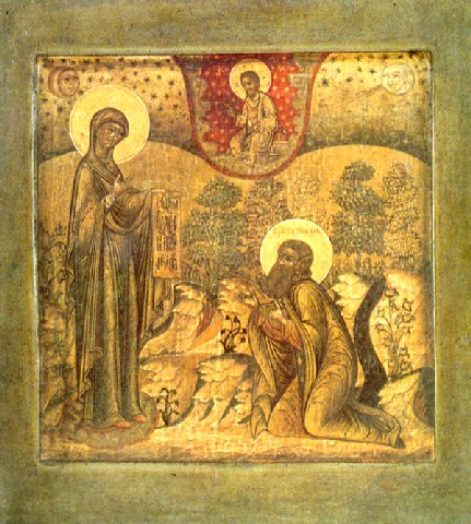 Εδώ, το 1501 μ.Χ., ανήγειρε ένα ξύλινο ναό πρός τιμήν της Θεοτόκου και λίγο αργότερα ο Μητροπολίτης Σίμων τον όρισε ως ιερομόναχο της μονής.